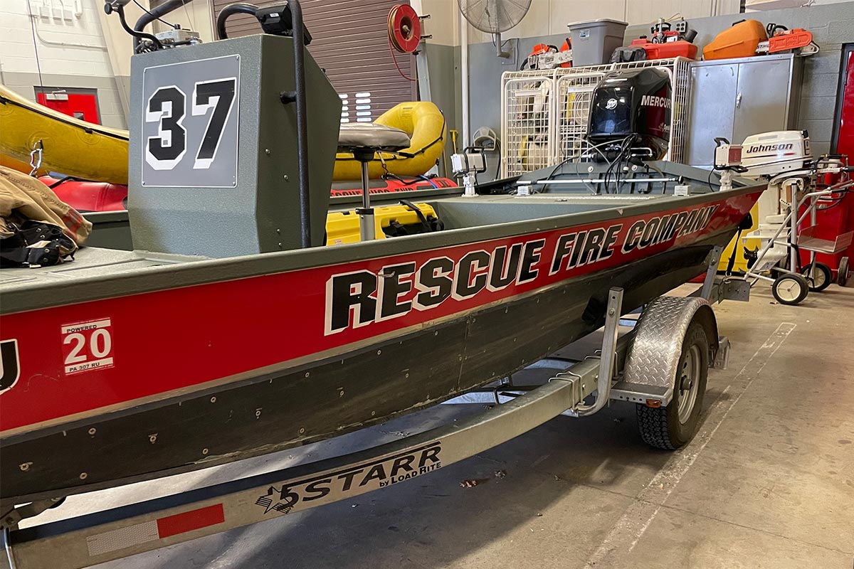 Rescue Fire Company boasts a large variety of water rescue equipment so that regardless of the terrain, they are always ready to affect a rescue. Often being called upon not only in the first due with the 37-1 and 2 box areas covering parts of the Susquehanna River, but in times of natural disaster, Rescue is also the primary marine response units for several surrounding jurisdictions.